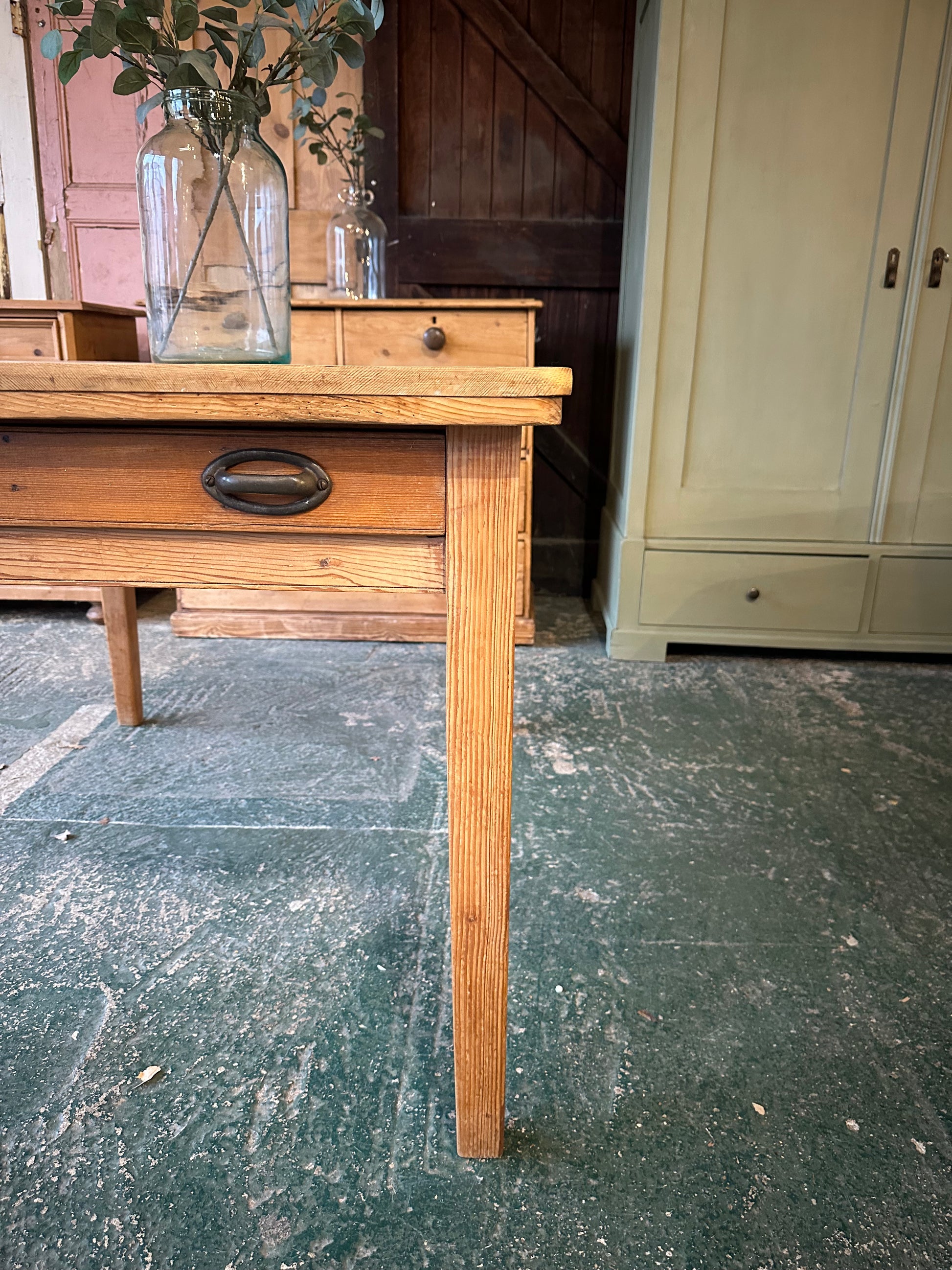 Beautiful rustic farmhouse table with gorgeous distressed top and legs. Drawer at one end.